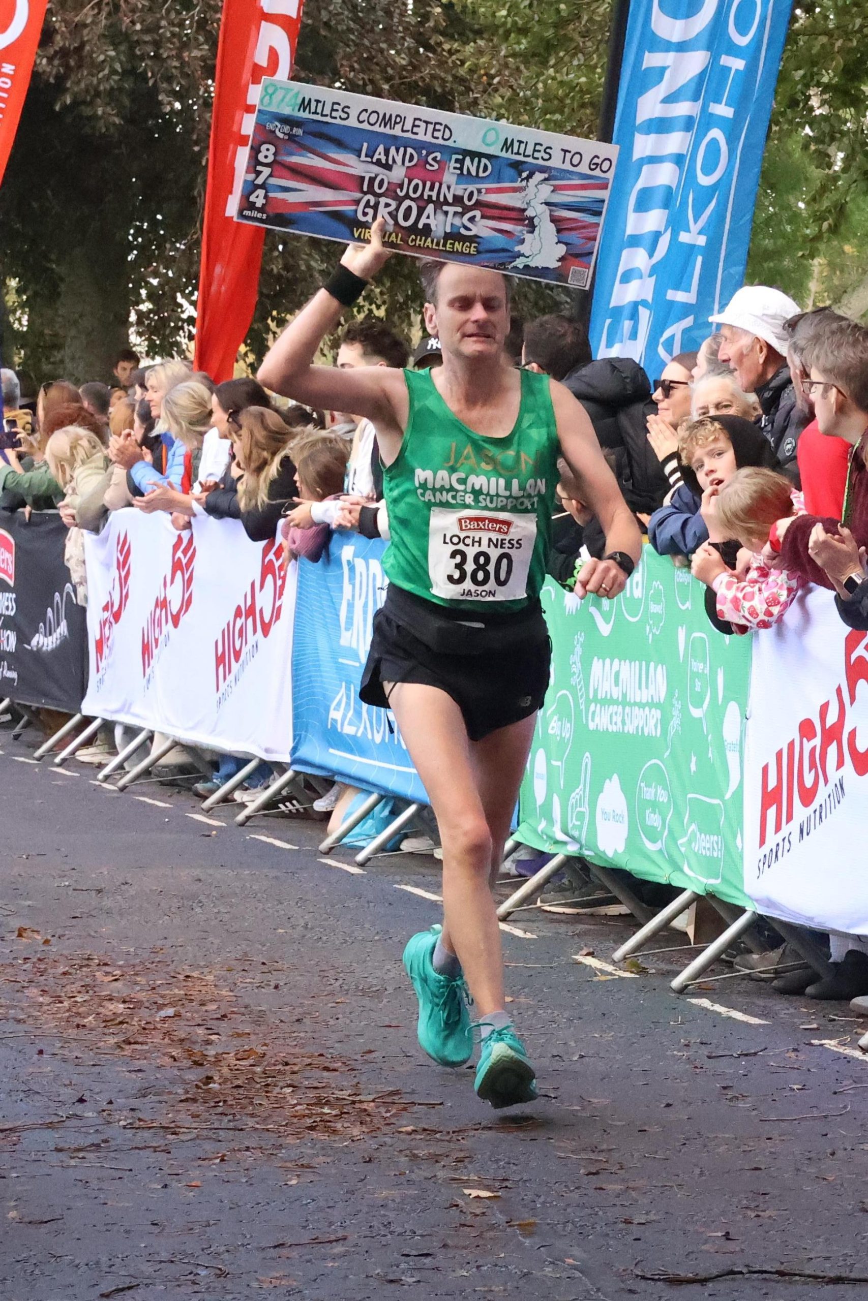 Reflecting on his final leg at the Loch Ness Marathon, Jason said, “The atmosphere was amazing. My wife, Sam, handed me the sign for the virtual Land’s End to John O’ Groats challenge about 300 metres from the finish, which really boosted the cheering. The scenery was brutal for running, but absolutely stunning.”
