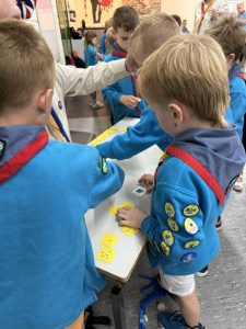“Teamwork was much needed for building a tower, Yale locks, and making the map. The football and pea challenge required patience and skill. Rescuing Fred tested all teams at all levels of ability. A refreshment break was needed halfway through, and the Beavers resumed with renewed vigour.