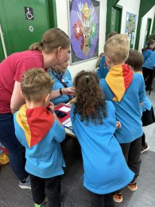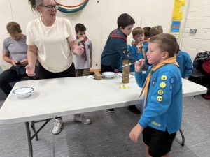 “Teamwork was much needed for building a tower, Yale locks, and making the map. The football and pea challenge required patience and skill. Rescuing Fred tested all teams at all levels of ability. A refreshment break was needed halfway through, and the Beavers resumed with renewed vigour.