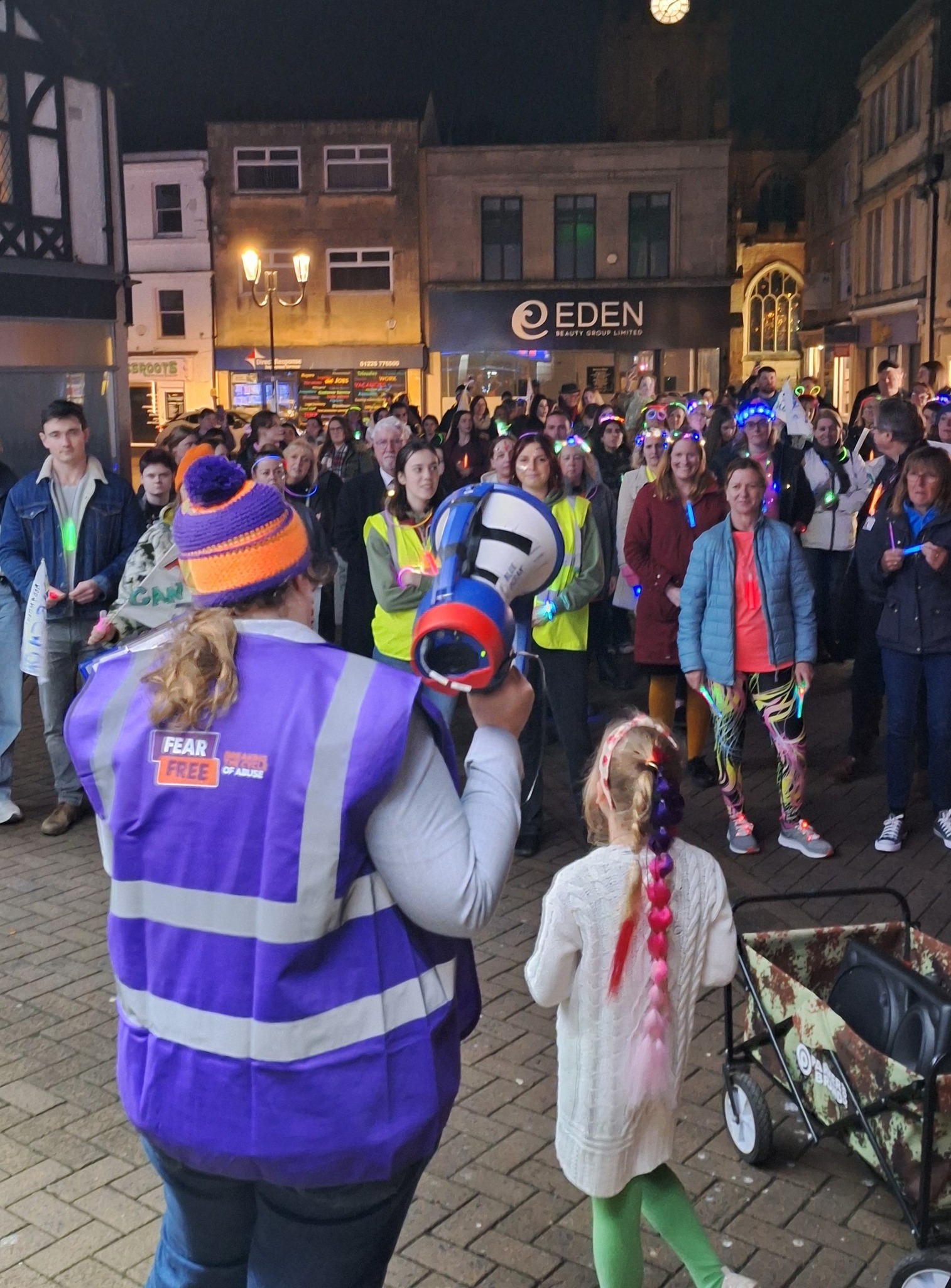 The Mayor of Melksham, Saffi Rabey, said, “Free the Night is a fantastic opportunity for our community to come together and light up the town centre in support of safer streets for women in Melksham and beyond. As FearFree is one of my chosen charities, I am especially proud that Melksham Town Council is partnering with them to support such a powerful cause. I am really looking forward to marching alongside fellow supporters on the night and expressing our dedication to creating an equal world for women.”