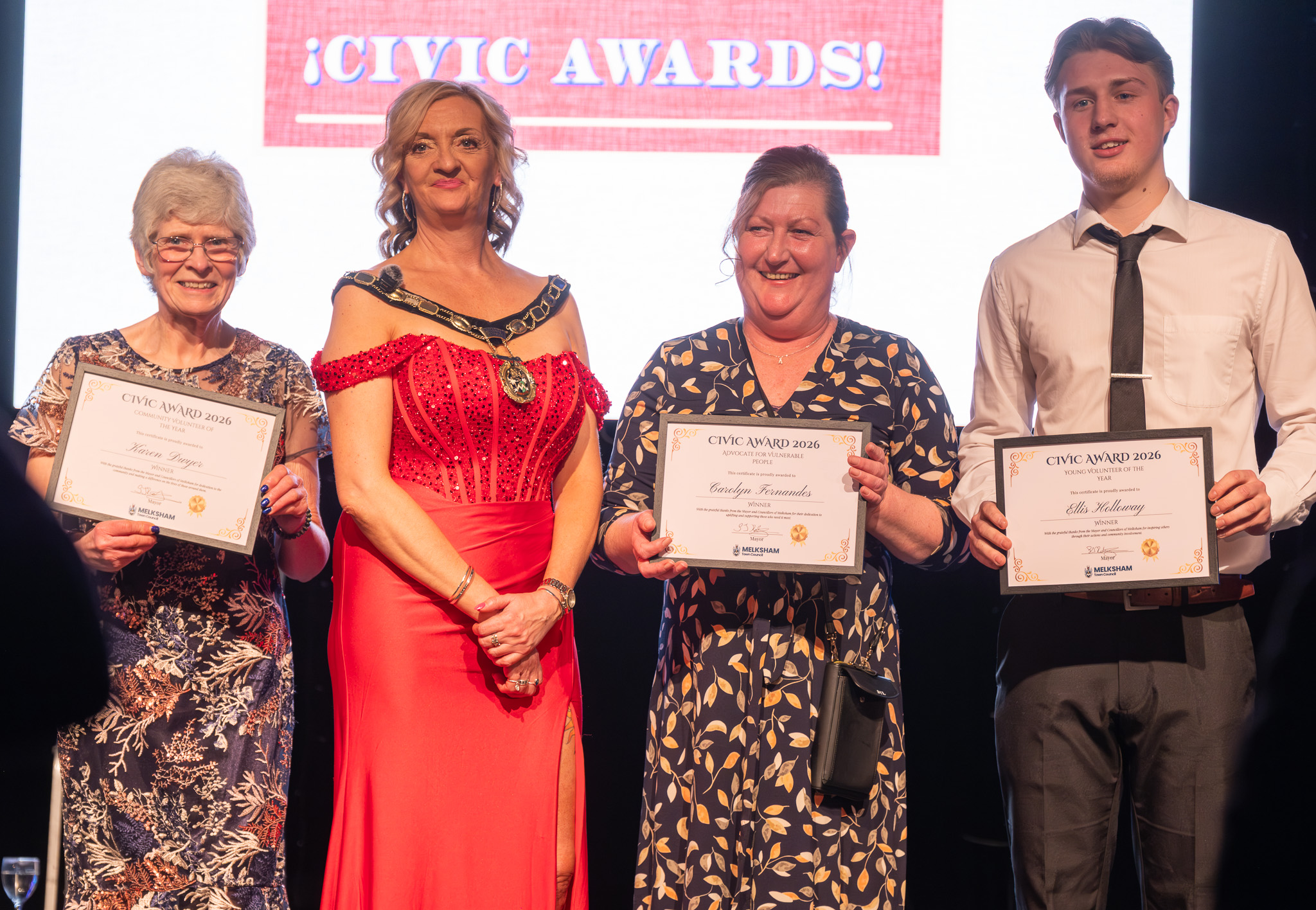 Volunteers who have made a significant contribution to Melksham were honoured with Civic Awards at a special reception evening hosted by the Mayor.
